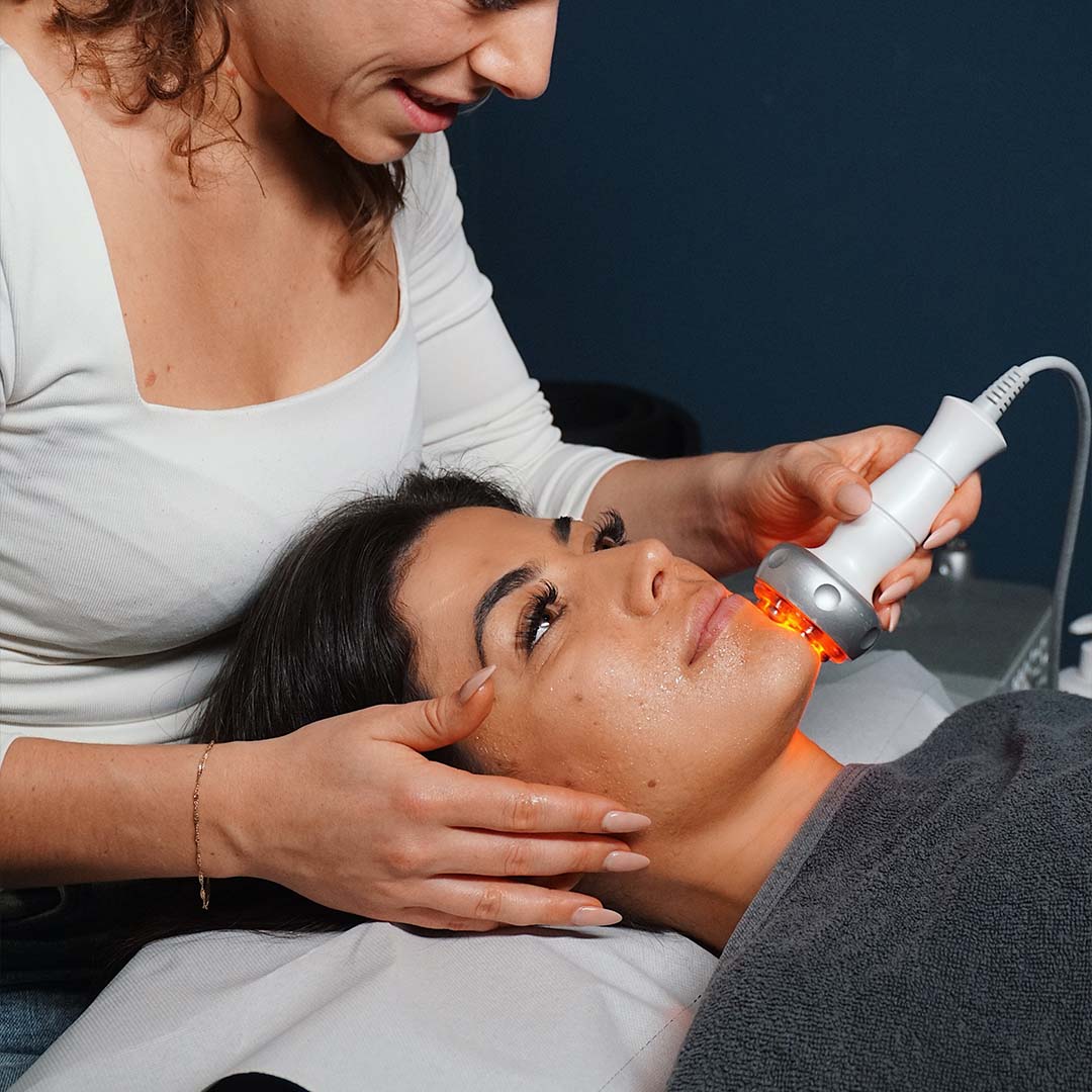 Using handpieces of various sizes, energy is gently directed into deeper layers of the skin without damaging the skin barrier. The radio waves heat the tissue, causing the water molecules in the epidermis to vibrate, which leads to the structuring and contraction of the collagen fibers within. New collagen is formed, making the skin noticeably firmer and smoother. The depth of wrinkles is reduced in this process. All of this is achieved painlessly and non-invasively. We recommend 5-8 treatments, spaced one week apart.